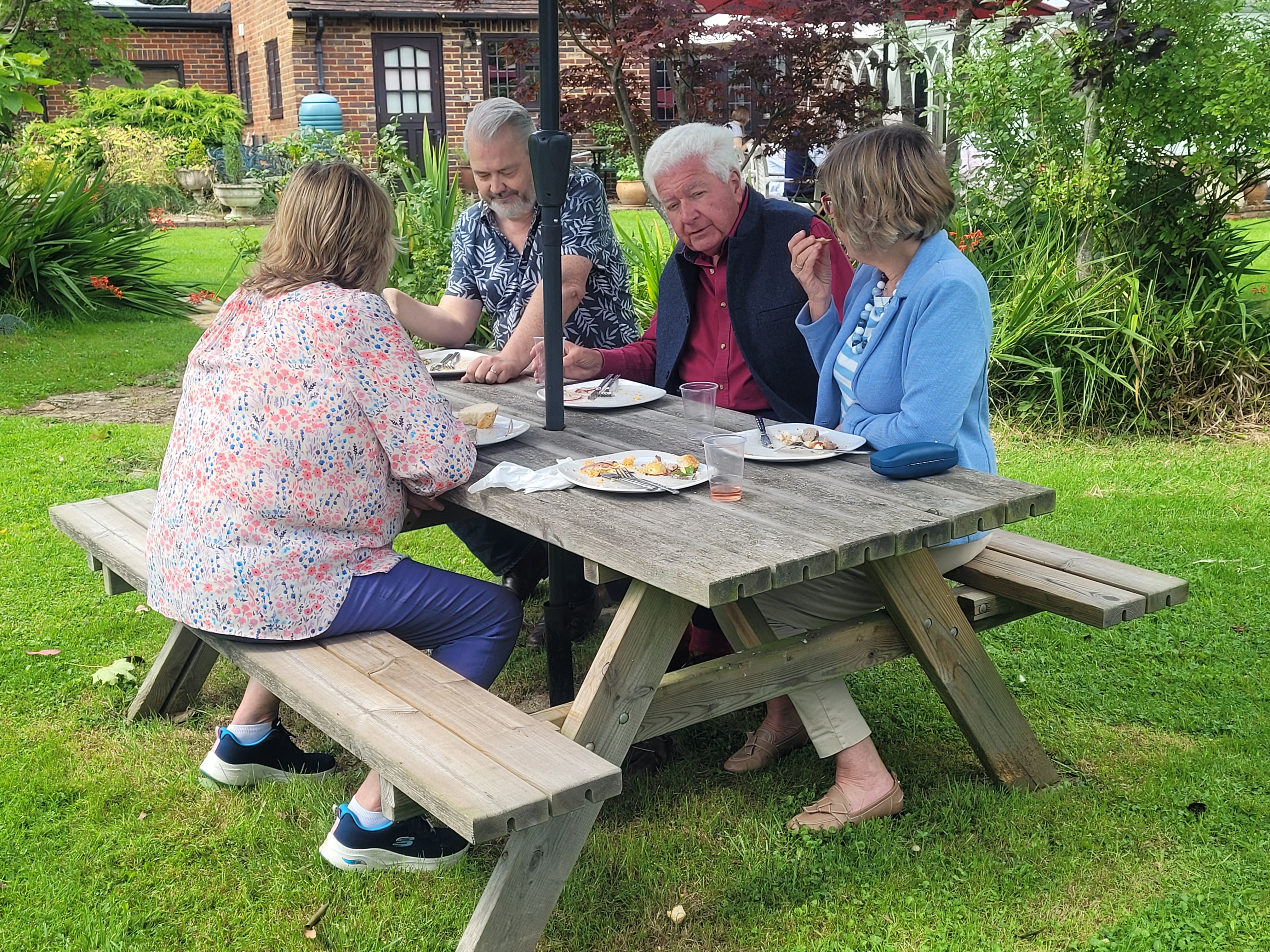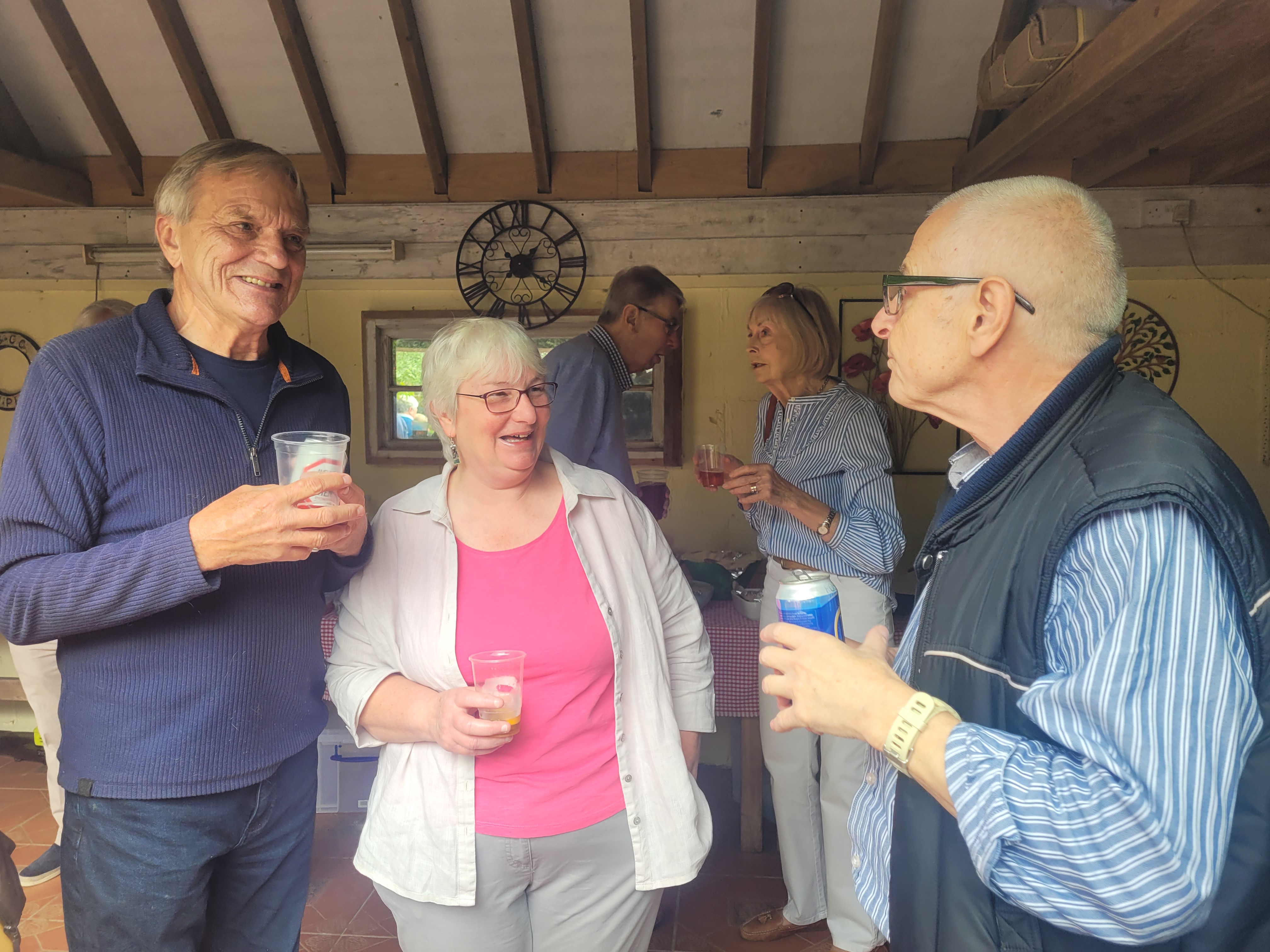 The BBQ food of sausages, chicken and kebabs was beautifully grilled by Dave and Roy, and the accompanying salads and bread went down a treat. And let’s not forget the grand finale – the delicious desserts that vanished like magic, leaving smiles and satisfied sighs in their wake. And all washed down with a choice of red, rose and white wine, delicious Pimms, beer and soft drinks. It was the true recipe of an excellent BBQ!
