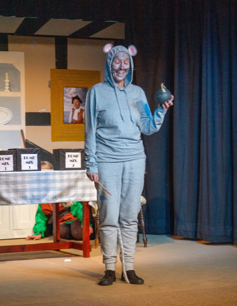 Having decided that being onstage was more ‘her’ than being backstage, Tracey auditioned and got the part of Dim Rat for the 2022 production of Dick Whittingdon – and perfected the ‘Dim’ voice which she sometimes will still lapse into today…and to her delight was given the lead role as Jess in the 2023 production of Surprise! Surprise!
