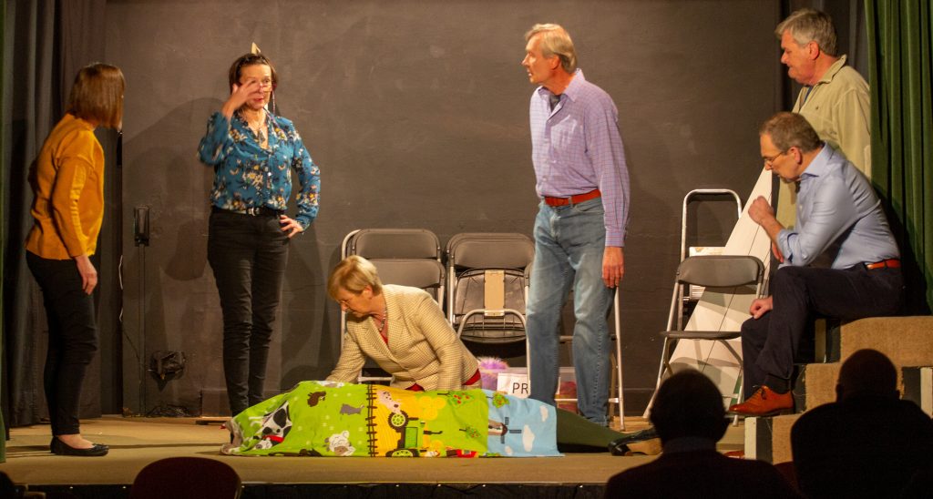 Tracey moved to the village in March 2020 and went along to the auditions for Agatha Crusty and the Pantomime Murders with a view to helping out backstage – she got offered initially the part of Emily, then she was ‘upgraded’ to the role of Gloria.