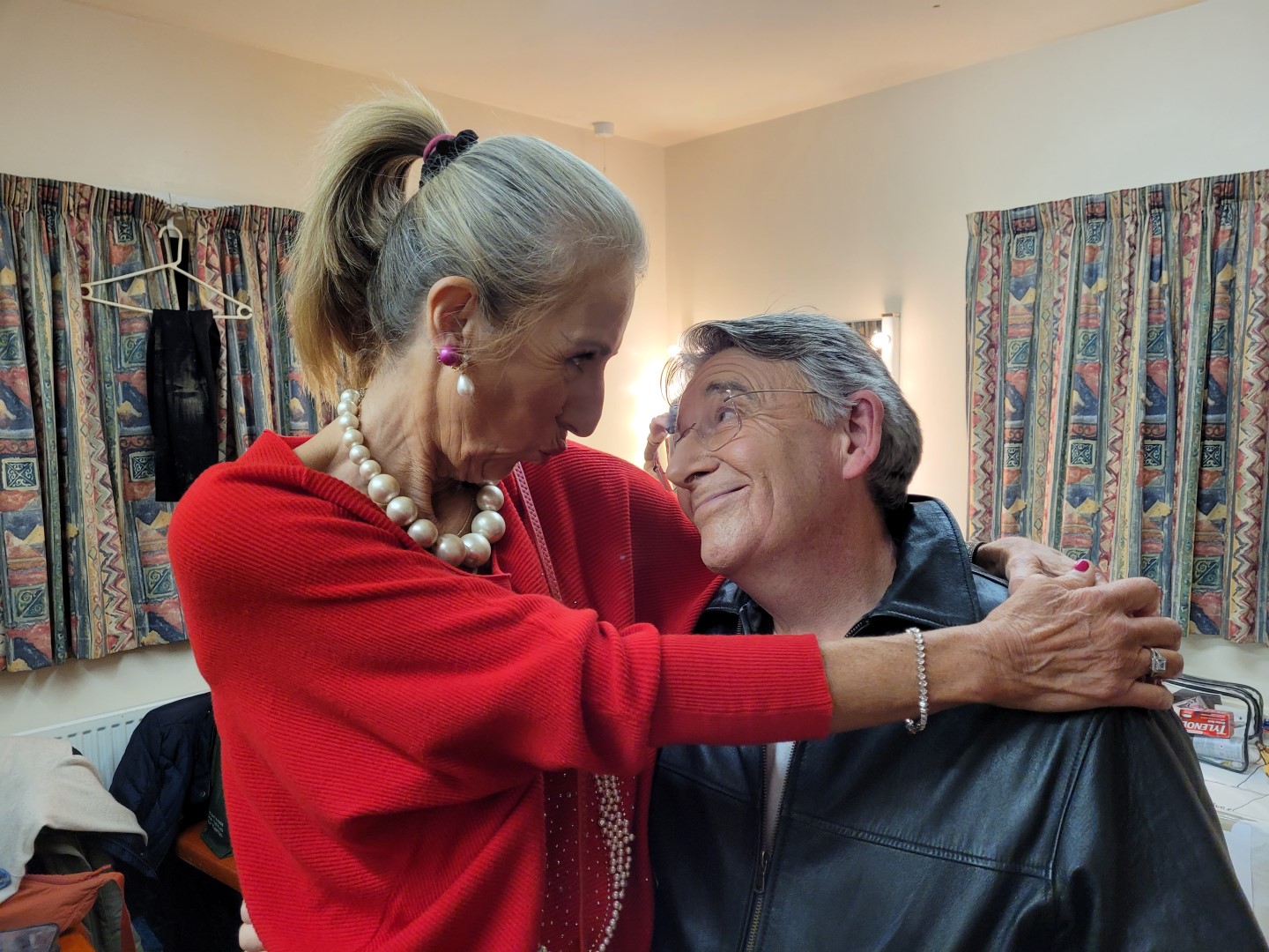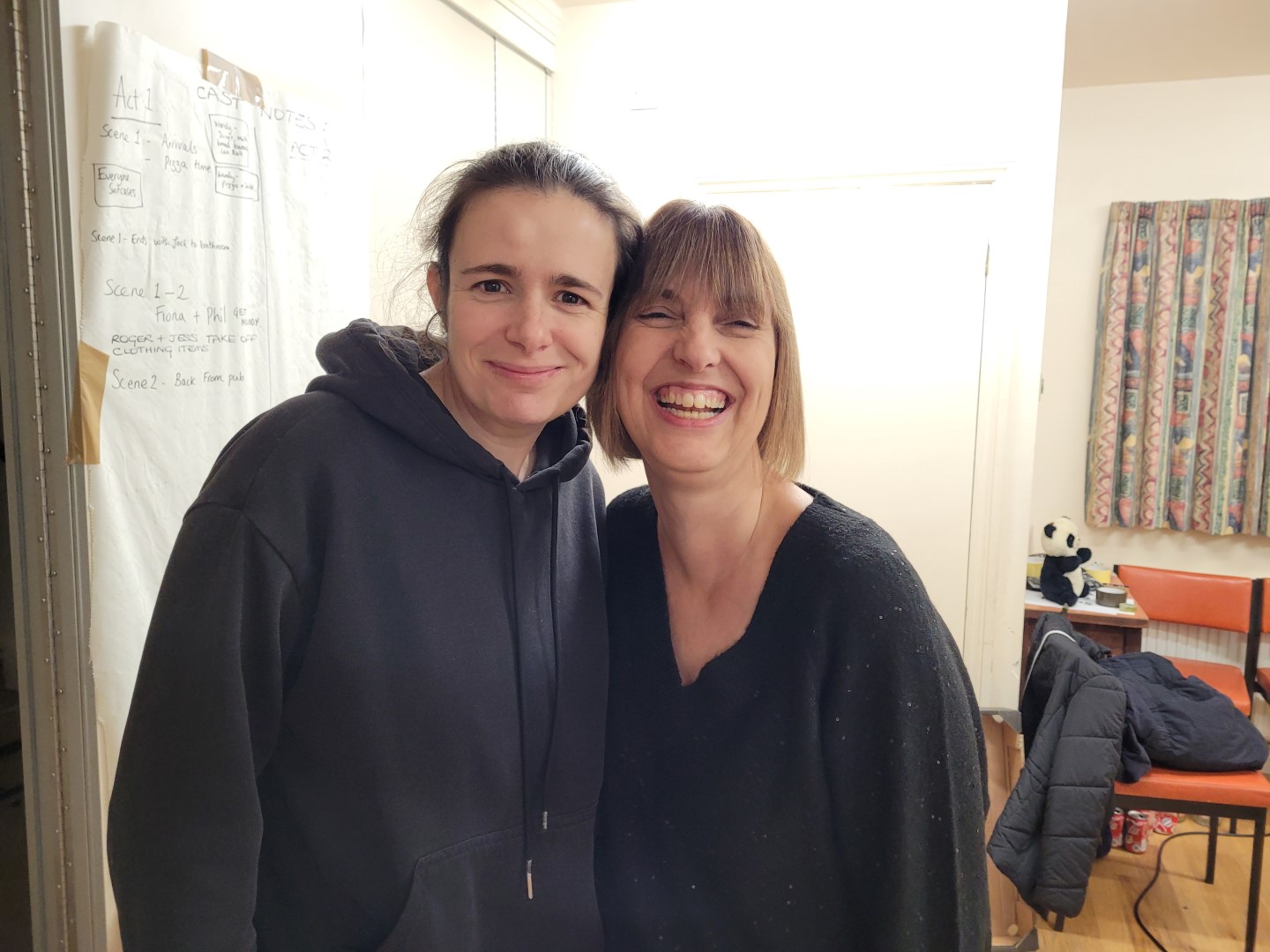 The 2023 D.A.D.S. production of “Surprise! Surprise!” ended last night after three successful performances, and the curtains have now closed. We entertained a full audience at Winn Hall on Thursday, Friday, and Saturday nights, and the feedback we’ve received already about the show has been overwhelmingly positive! Both the cast and backstage crew thoroughly enjoyed the experience, sharing plenty of laughter backstage before and after each show. Our huge thanks go to everyone involved in the show and also to everyone who turned out on the three rather chilly Dunsfold evenings to watch us perform. We hope you enjoyed it as much as we did! Here are a few photos from the Saturday night, taken backstage just before the last performance started.